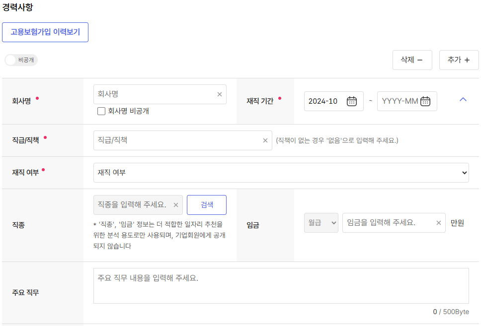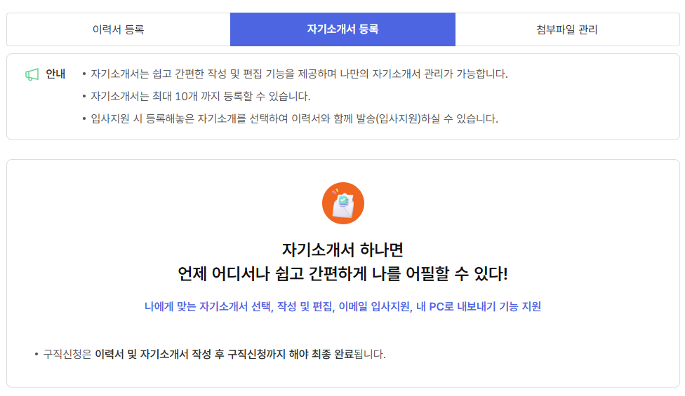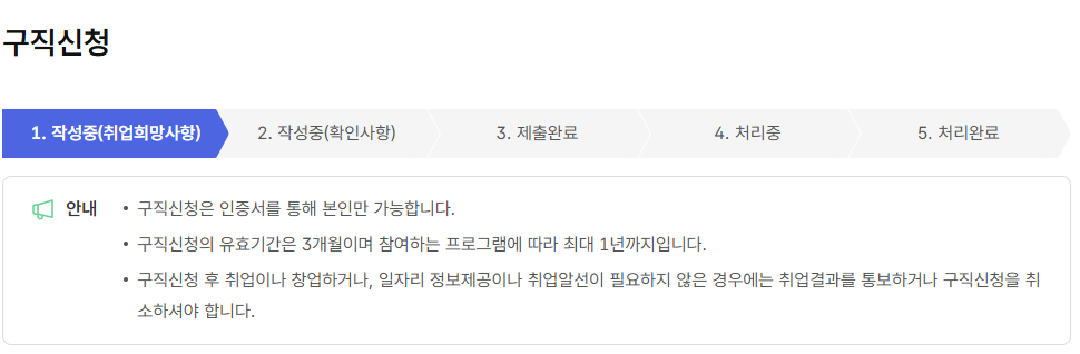 ■ 구직신청은 이력서 및 자기소개서 작성 후 구직신청까지 해야 최종 완료