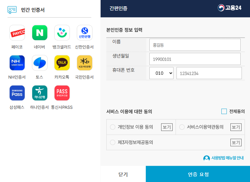 1. 구직등록하기 위해서는 본인인증을 통해 로그인을 하셔야 합니다.