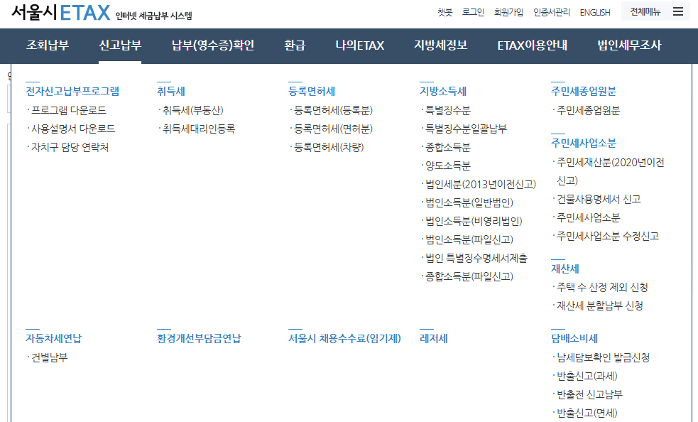 1. 온라인 신청 : 서울시 ETAX 홈페이지 접속하여 연납신청