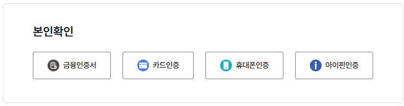 4. 본인확인(인증4가지 : 금융인증서, 카드인증, 휴대폰인증, 아이핀인증)