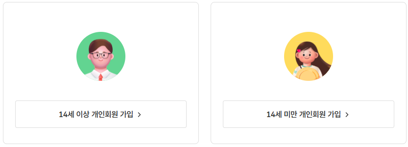3. 14세 이상 또는 14세 미만 개인회원 가입