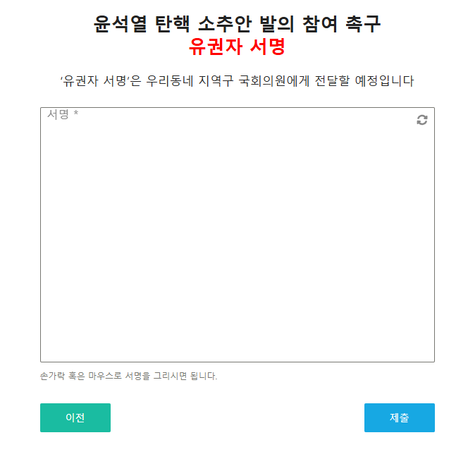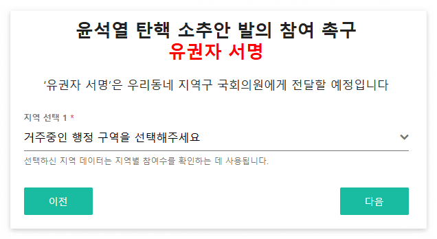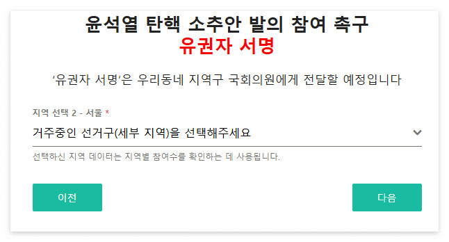 2. 윤석열 탄핵소추안 발의 참여 촉구 유권자 서명 시작하기를 선택