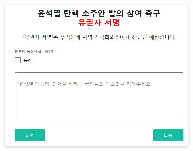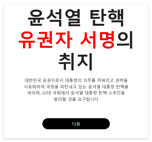 3. 윤석열 탄핵 유권자 서명의 취지를 확인 후 다음을 선택